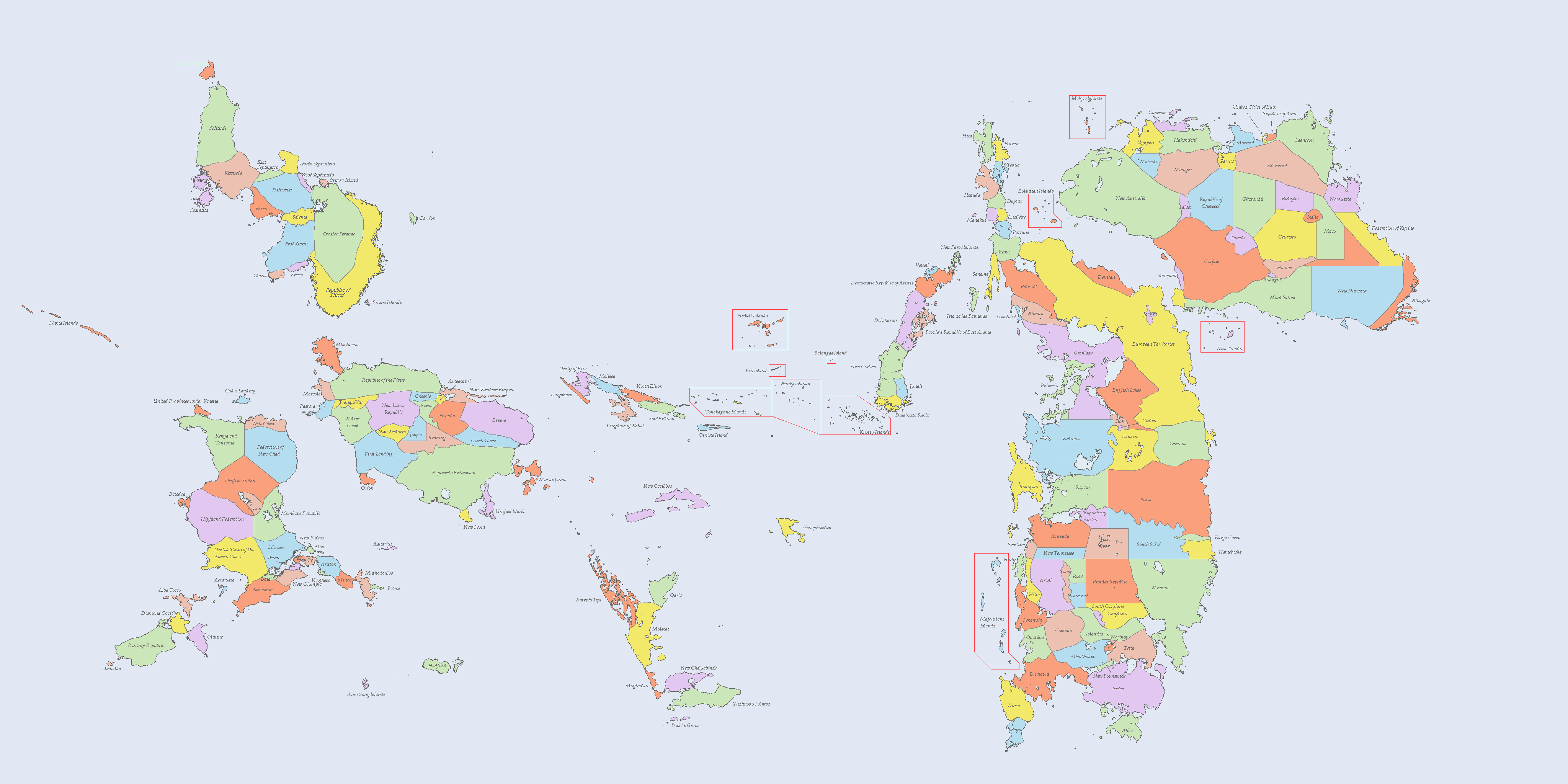 - Version 2 of the world map. I kept these continents and added them in the centre of the new map. This one was kinda boring because I just took random countries from Earth and put 'new' or whatever in front of them. Lame!!!
